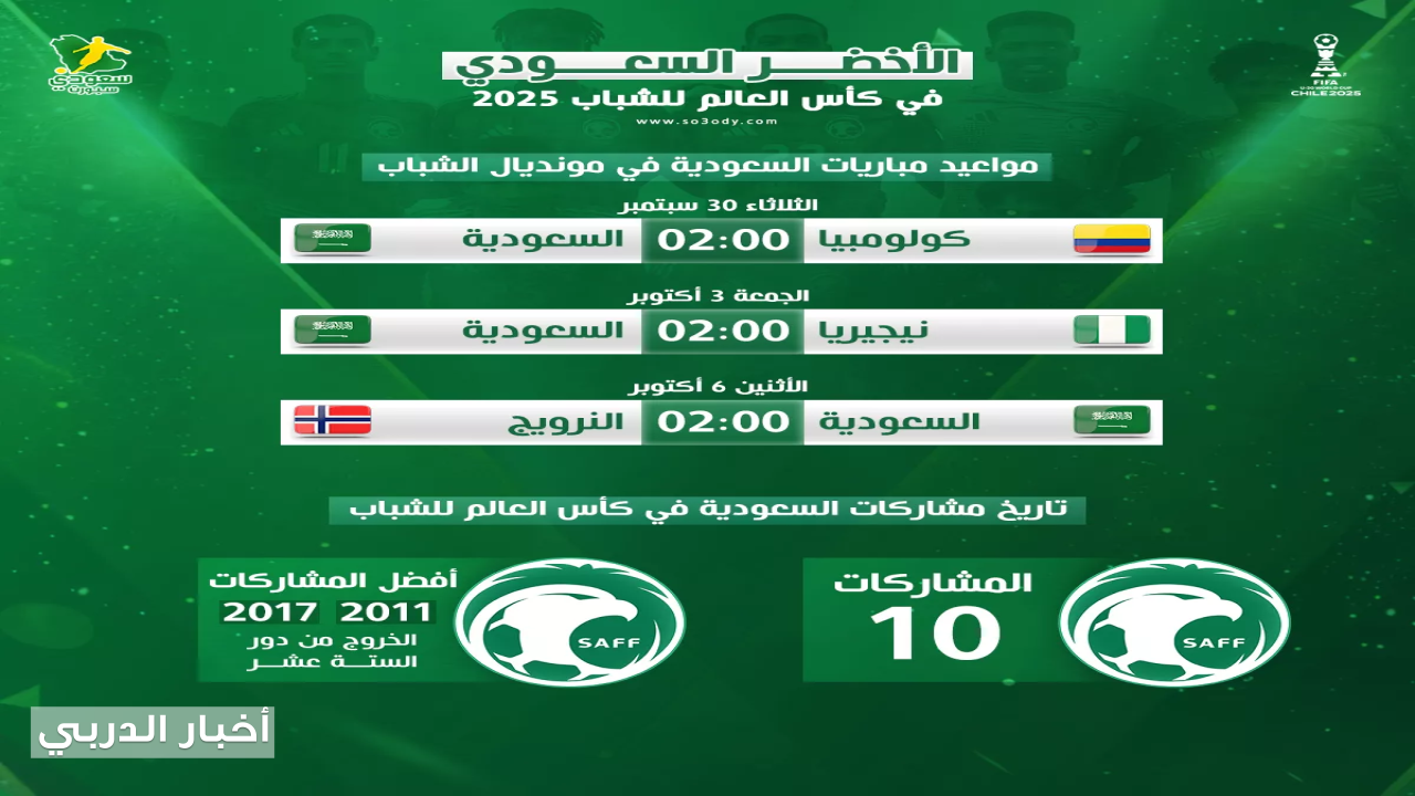 مواعيد مباريات السعودية في كأس العالم للشباب