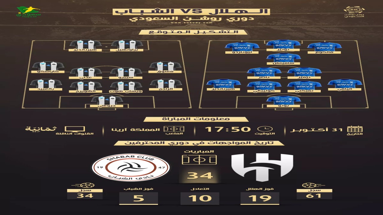 تتجه أنظار عشاق كرة القدم السعودية صوب العاصمة الرياض، حيث يستعد الفريق الأول لكرة القدم بنادي الهلال لخوض مواجهة مرتقبة ومهمة أمام نظيره نادي الشباب، في إطار منافسات دوري روشن السعودي للمحترفين لموسم 2025.