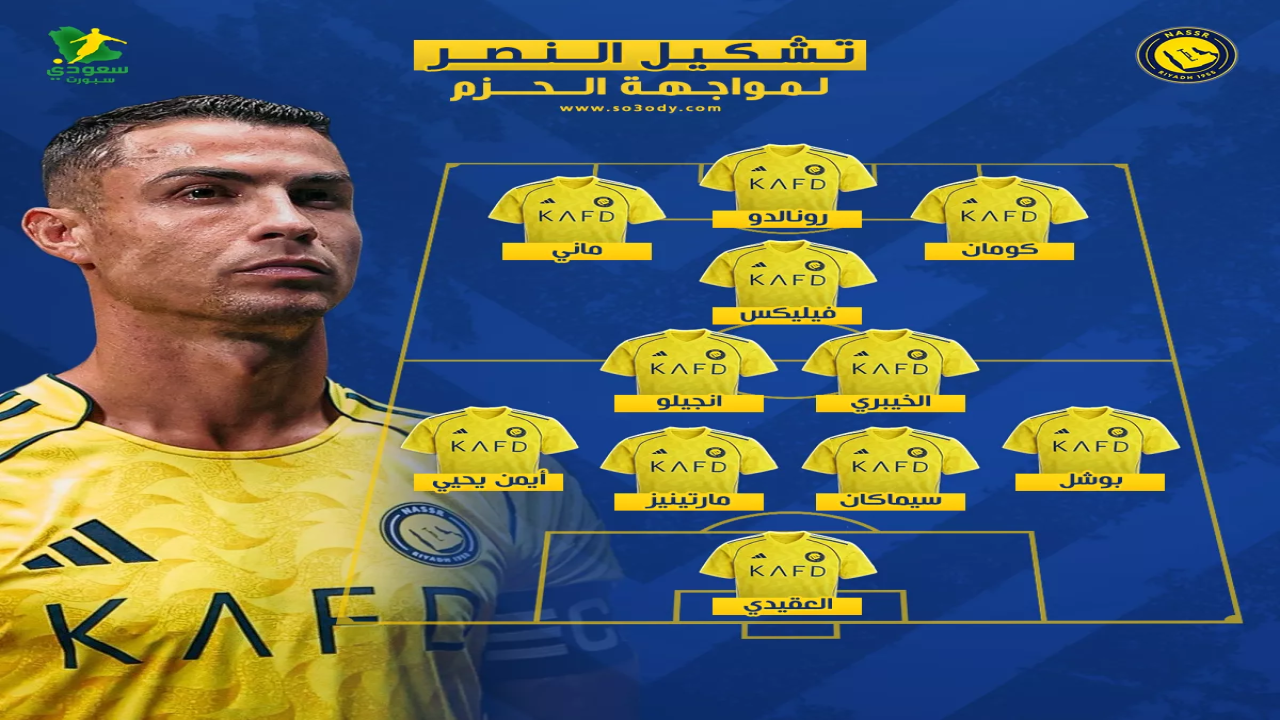 **التشكيلة الرسمية لنادي النصر في مواجهة الحزم**