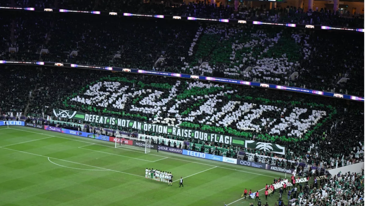 ردت جماهير الفريق الأول لكرة القدم بالنادي الأهلي على رسالة مناصري الاتحاد، قبل مباراة ديربي جدة في مسابقة دوري روشن للمحترفين.