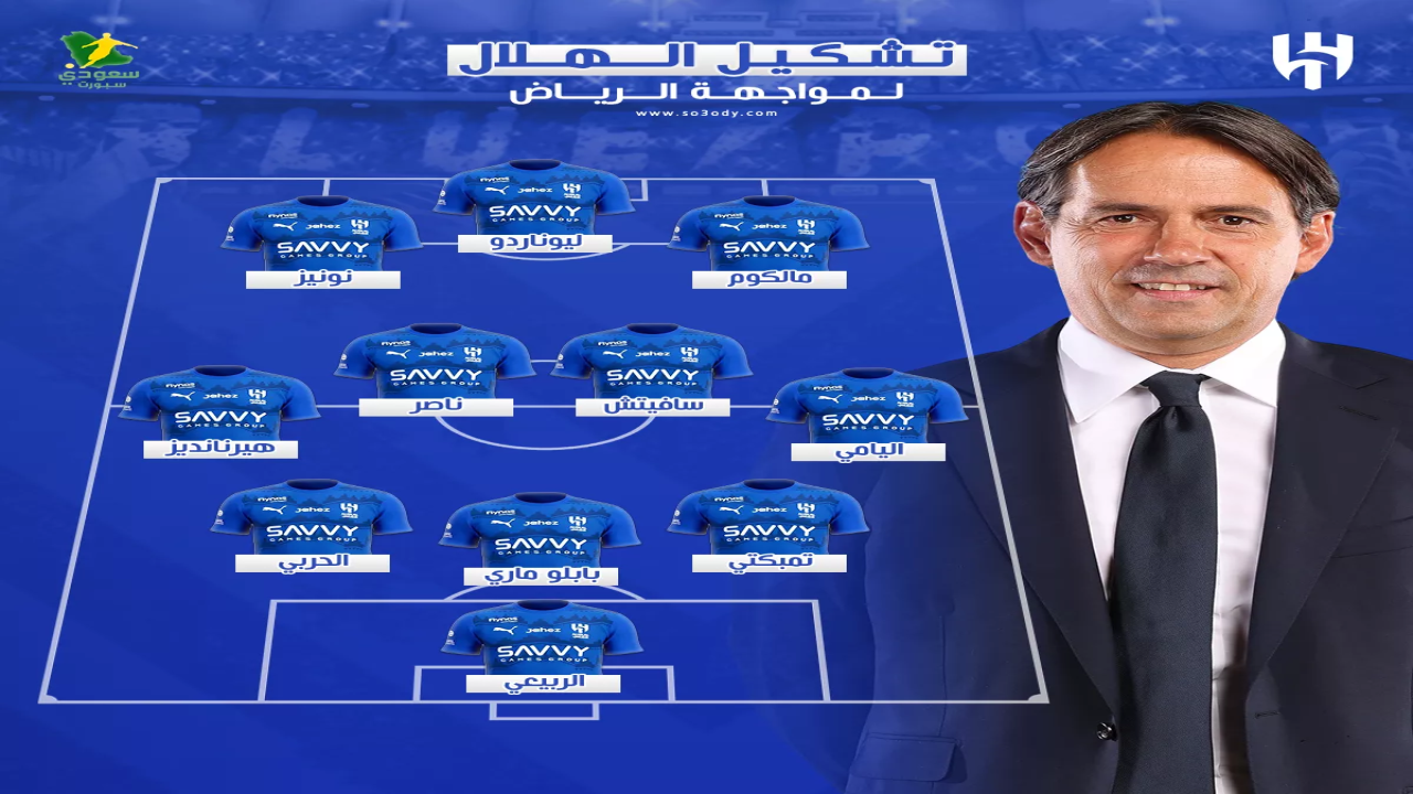 أعلن الإيطالي سيميوني إنزاجي المدير الفني لفريق الهلال تشكيل مباراة الرياض، في إطار منافسات الجولة الـ 18 من دوري روشن للمحترفين.