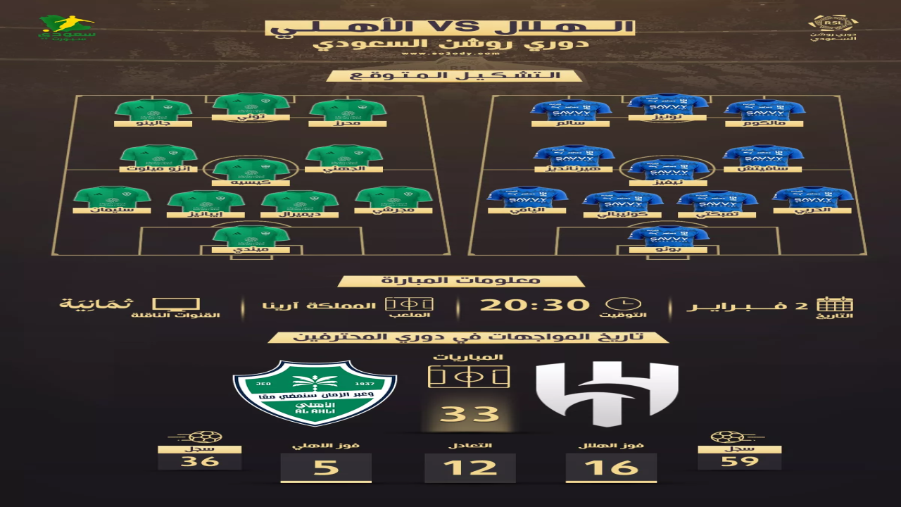 تتجه أنظار جماهير كرة القدم السعودية مساء غدٍ الاثنين، 2 فبراير 2026، إلى ملعب «المملكة آرينا» بالعاصمة الرياض، حيث يستضيف نادي الهلال نظيره الأهلي في مواجهة كلاسيكية مرتقبة ضمن منافسات دوري روشن السعودي للمحترفين.