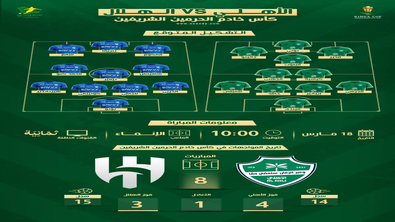 القناة الناقلة لمباراة الأهلي والهلال في كأس خادم الحرمين الشريفين